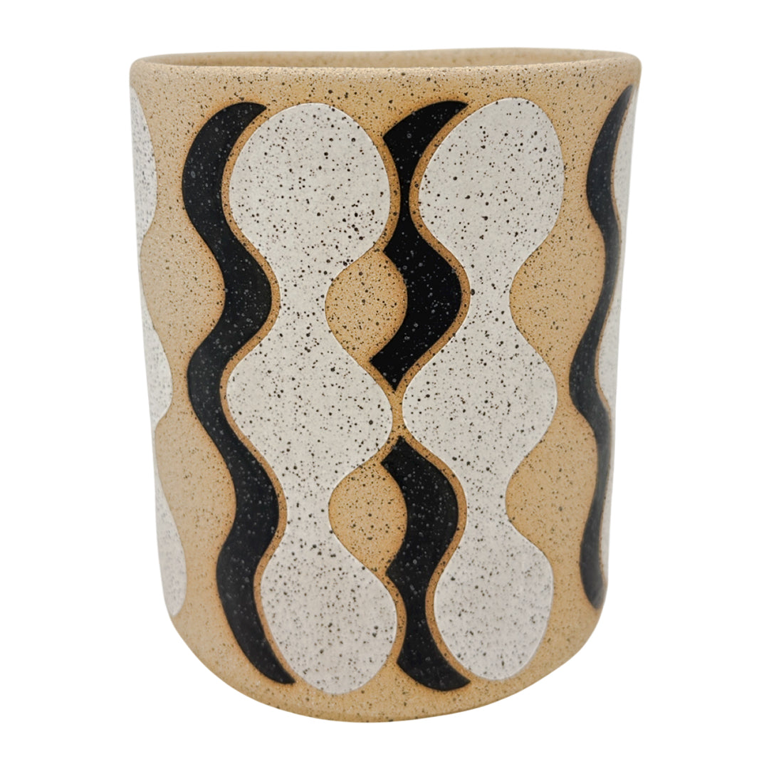 Construido a mano con arcilla de gres moteado y esmalte no tóxico sin plomo.
